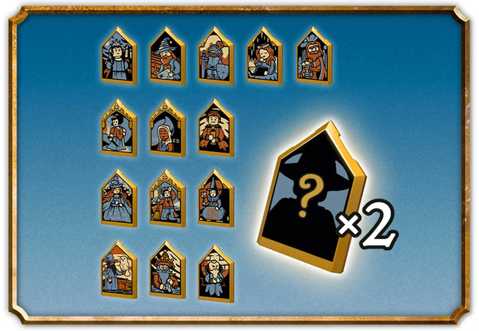 - 16 mini builds – A table, festive items and a gargoyle for each of the 4 Hogwarts™ houses, 2 of 14 collectible Hogwarts portraits, a teacher’s table, Hogwarts Express train and other festive items