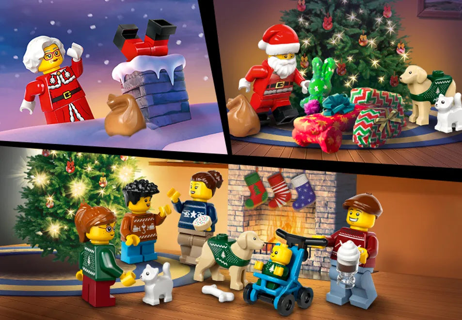 - Advent calendar gift set with 24 surprises – Includes Santa and Mrs. Claus minifigures and characters with Christmas sweaters, including a dog figure, plus mini builds and fun collectibles