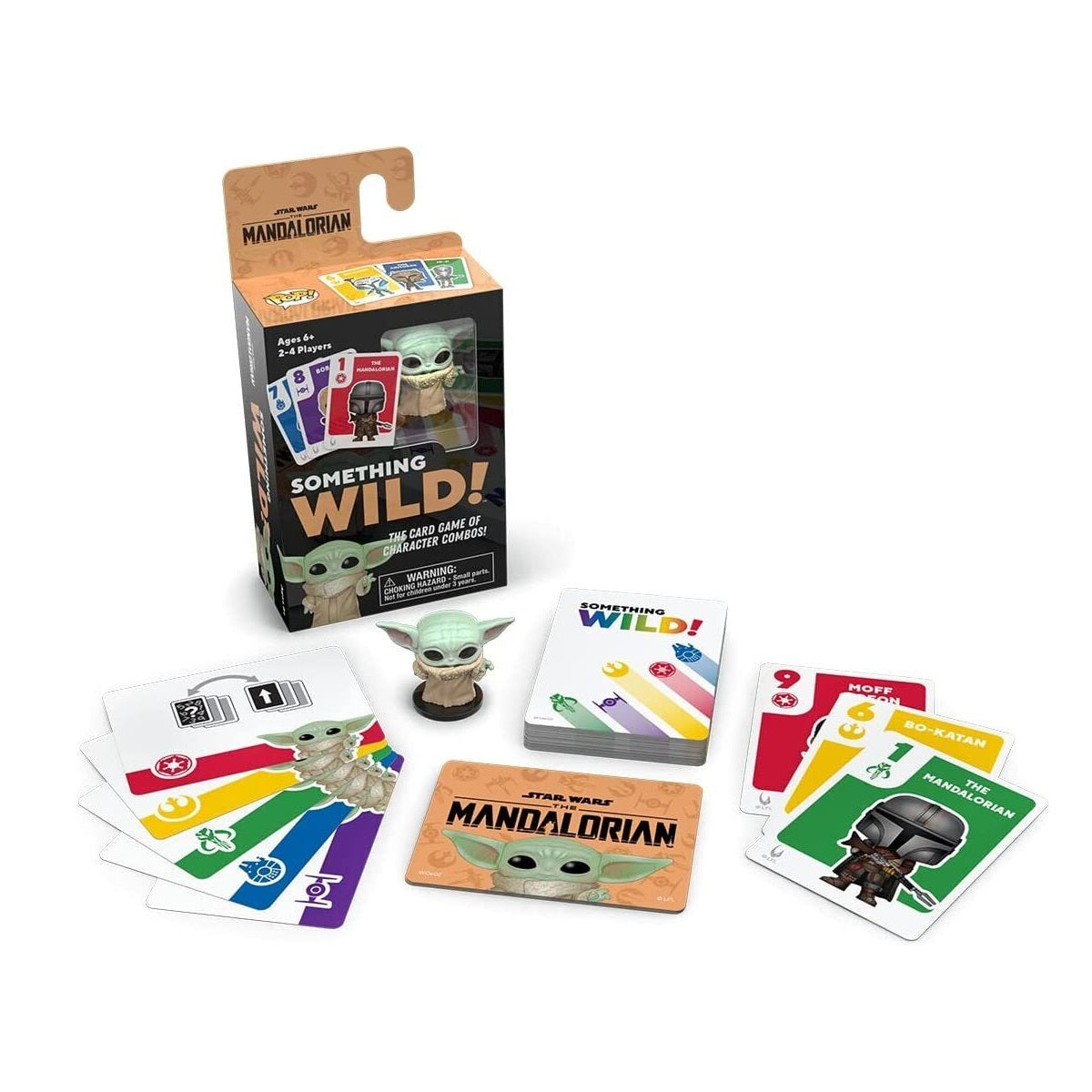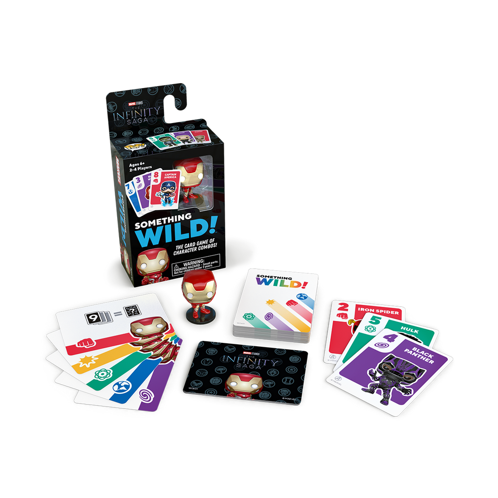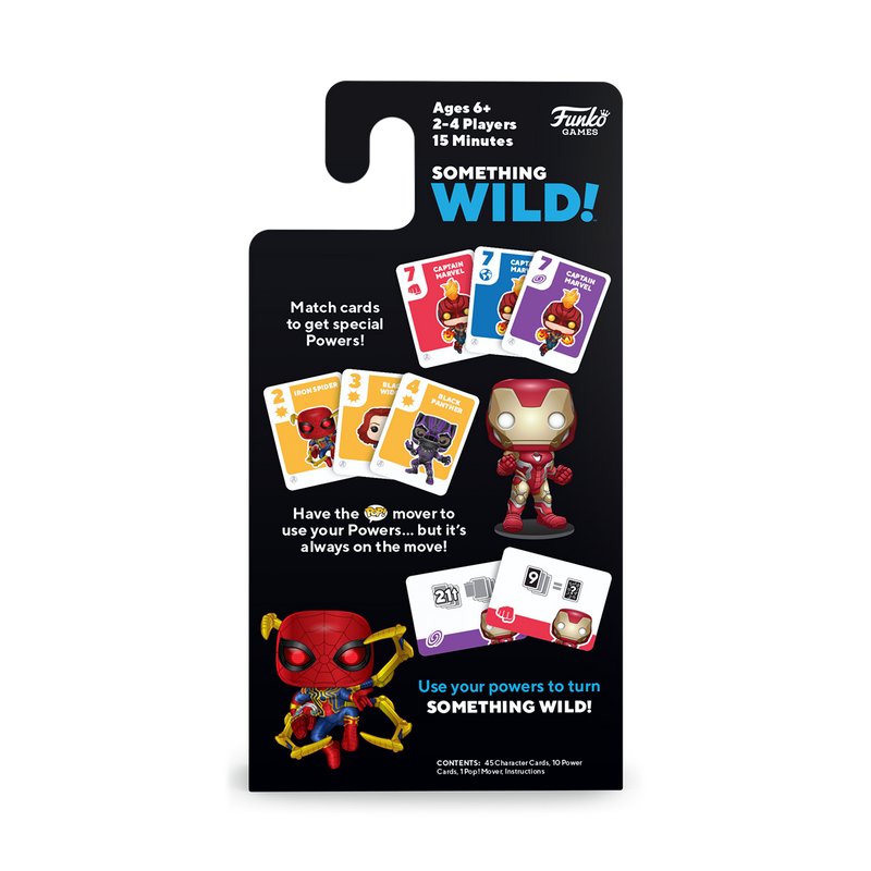 Play a fun and easy card game with the family and some of your favorite characters with Something Wild! Players try to earn Power cards by making sets (three cards with the same number) and runs (three cards of the same color, in number order). Whoever can use their Power cards to score three points first is the winner. Includes a Pocket Pop! Vinyl figure.