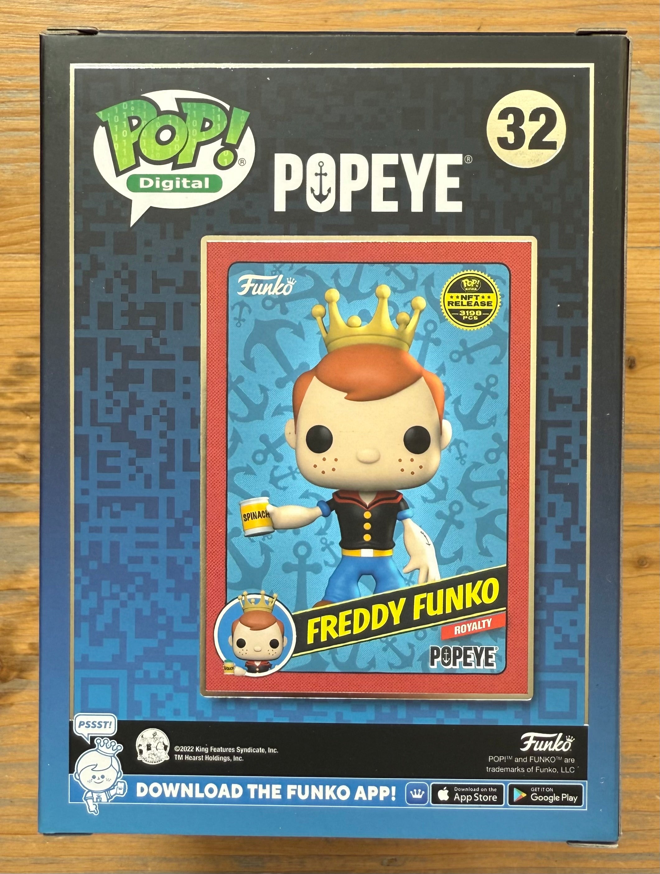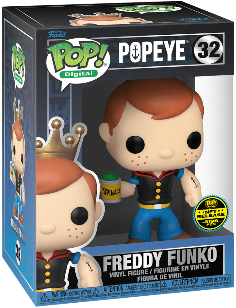 This is the Limited edition Funko physical collectible, designed exclusively for the Retro Comics x Funko Series 1 Digital NFT release. Limited to just 3,198 pieces, this features Funko mascot Freddy as spinach-loving sailor Popeye. He is what he is and that's all what he is.