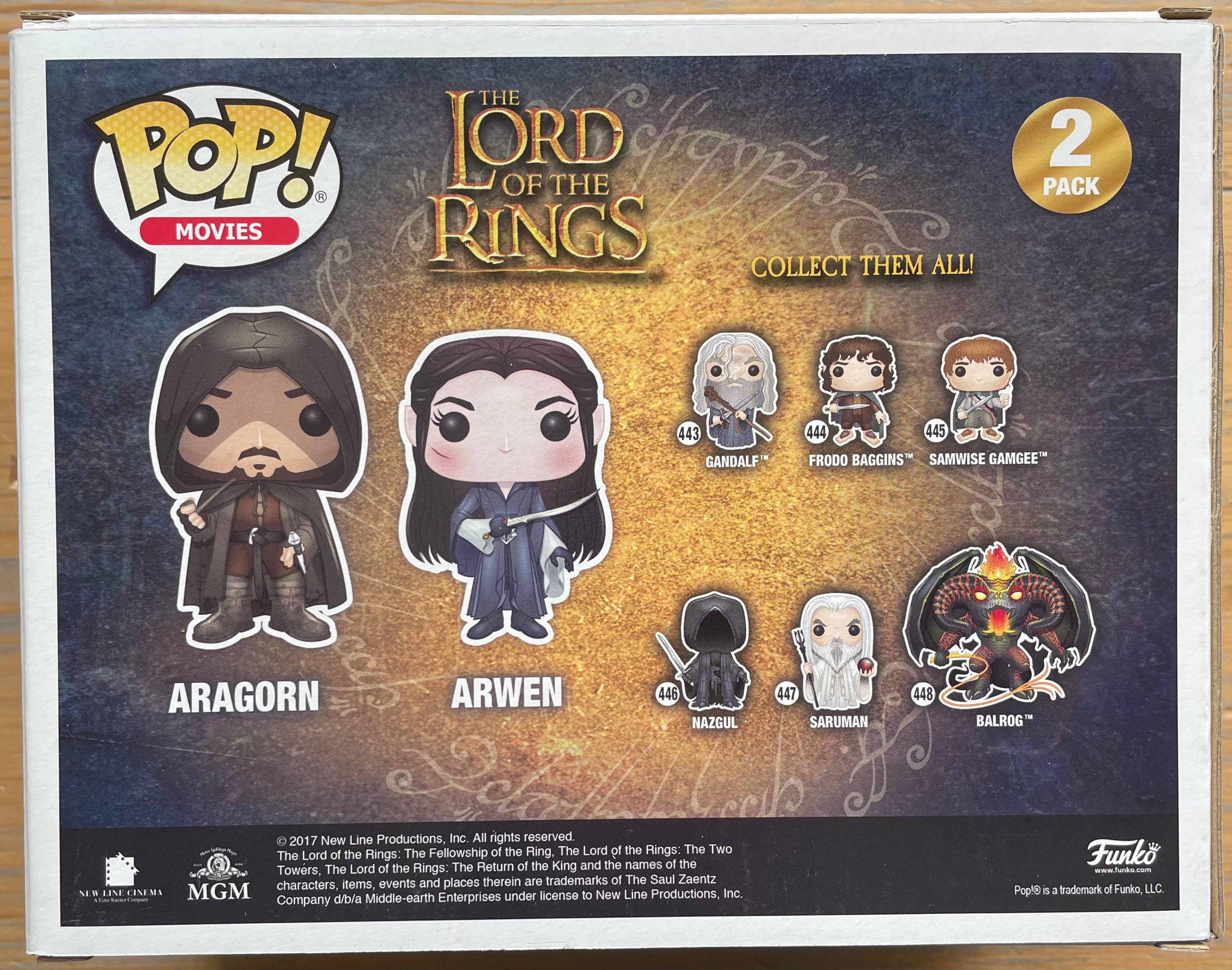Funko Pop! two pack featuring Aragorn and Arwen from The Lord of the Rings. Funko 2017 Summer Convention Exclusive.