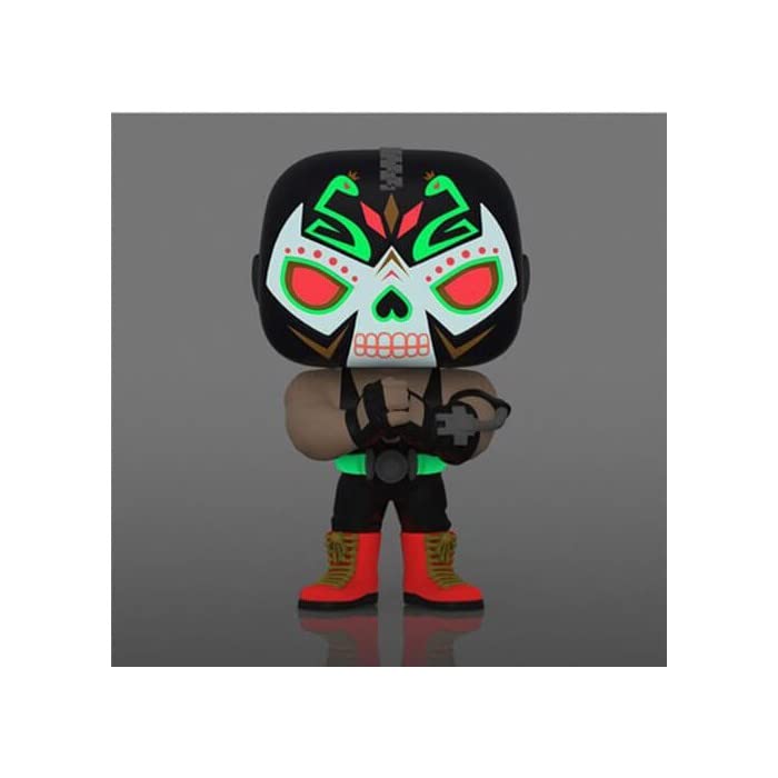 Details: Description Bane finally gets the respect he deserves! Iconic Batman supervillain meets Dia de los Muertos. Bane features glow-in-the-dark deco! Don't miss this Entertainment Earth Exclusive Pop! Vinyl figure! Iconic Batman villain Bane joins Funko's Dia de los DC line with a unique design based on candy-skull art. The streets of Gotham are in for quite a surprise when this Dia de los DC Bane Glow-in-the-Dark Funko Pop! Figure - Entertainment Earth Exclusive arrives in town! Measuring about 3 3/4-inches tall, he comes packaged in a window display box so you can easily add him to your DC Comics collection. And best of all, he includes a glow-in-the-dark effect! Bane is truly a one-of-a-kind figure you do not want to miss!