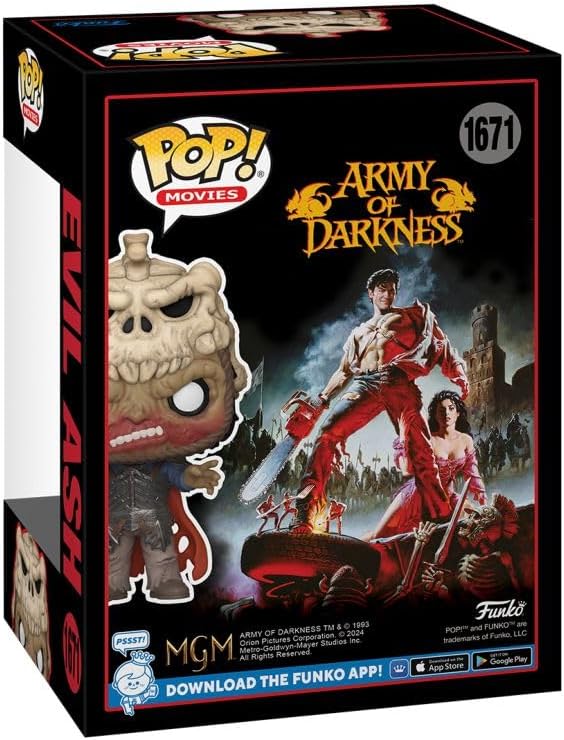 Ash Williams has been pulled into the Middle Ages to fight the forces of the undead! Now he must face his evil doppelganger, POP! Evil Ash! Expand your POP! Movies collection by summoning this Special Edition Scare Fair 2024 exclusive POP! Evil Ash with metallic details to your Army of Darkness™ lineup. Vinyl figure is approximately 4.85 in (12.3 cm) tall.