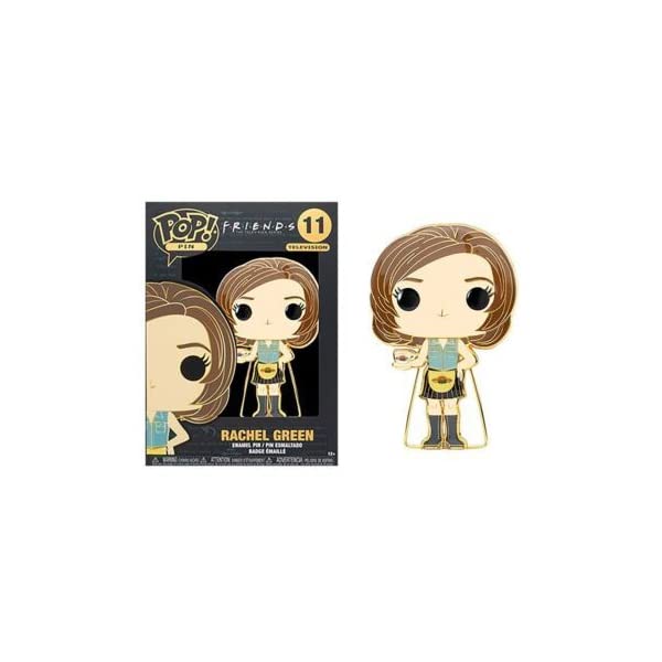 Whether you're at the Central Perk or just in the apartment, grab a cup of coffee and reminisce with the Friends Pop! Pins. Get the gang together, starting with Pop! Pin Rachel Green. Pin features gold colored hardware, and a built-in stand. Enamel pin is approximately 4-inches tall.