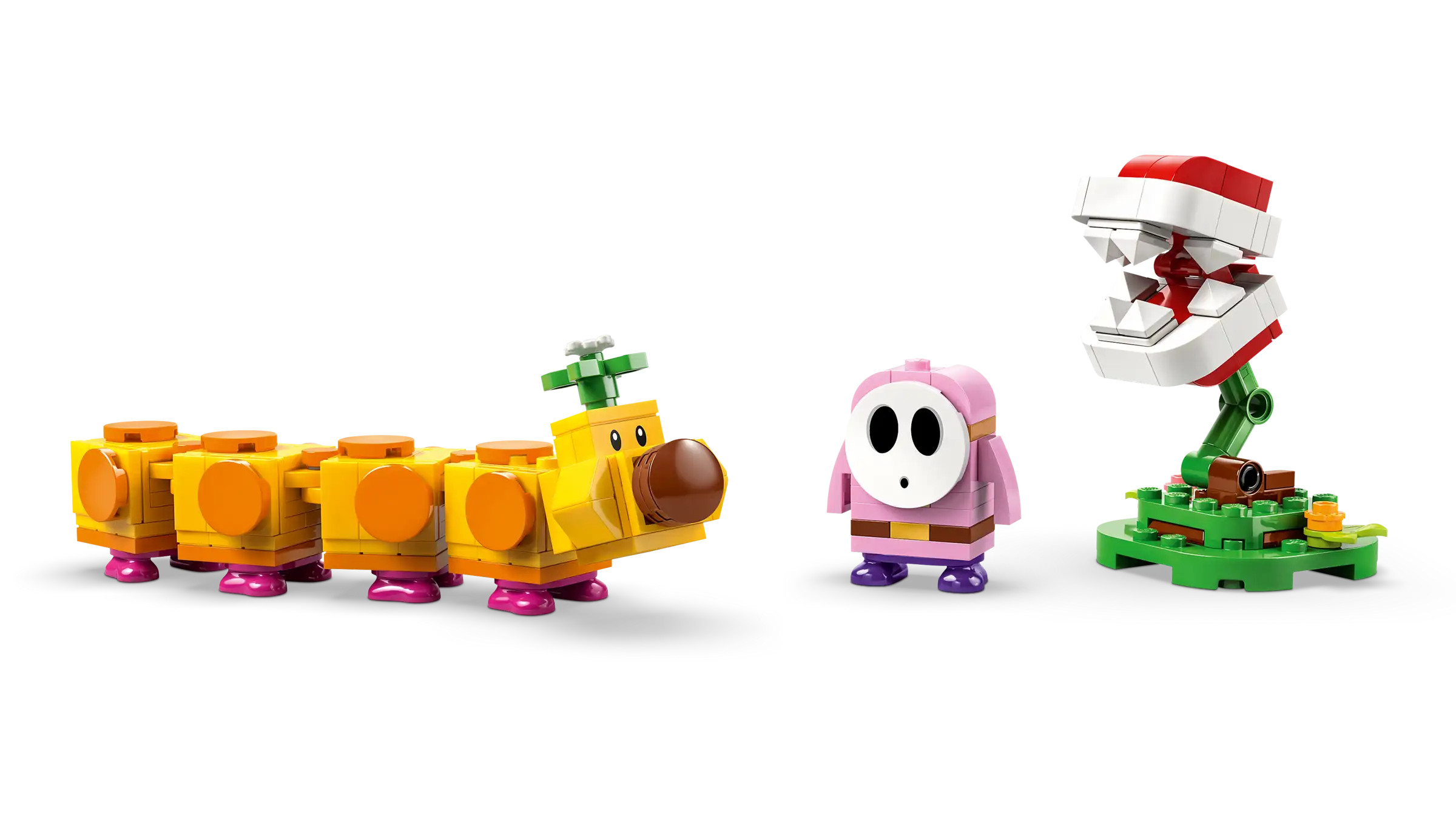 - Includes 3 brick-built LEGO® Super Mario™ toy figures – A Pink Shy Guy, Wiggler and Piranha Plant