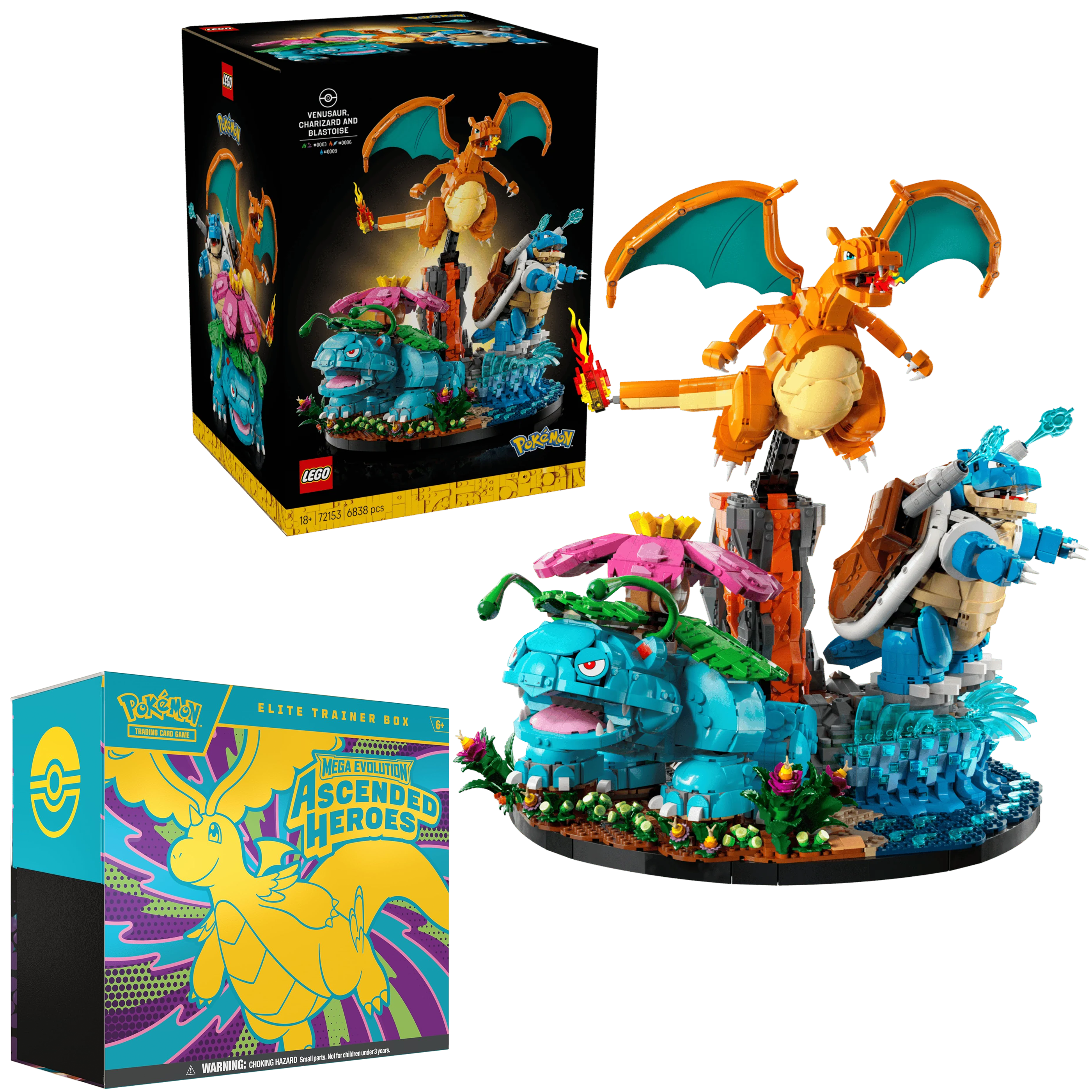 Bundle includes Lego 72153: Pokémon - Venusaur, Charizard and Blastoise & Pokémon TCG: Mega Evolution - Ascended Heroes Elite Trainer Box