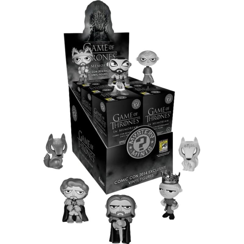 Details: Description Figurine Game Of Thrones Mystery Minis In Memoriam Limited Edition Exclusive collectible Mystery Mini series from San Diego Comic Con 2014. 1 blind box package, containing 1 (single) Game of Thrones Vinyl figure Series features 8 'Game Of Thrones' characters. 1 supplied - Content (character of figure contained) is random Blind boxes are sealed and contents unknown (character duplications in the figures contained are possible). Collect them all! Swap with friends!