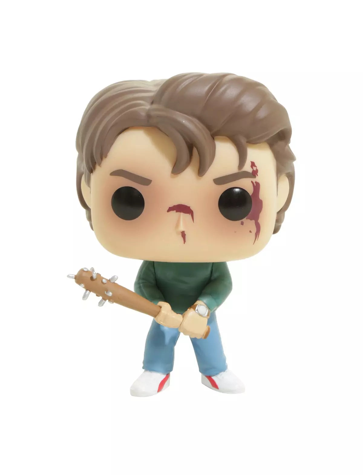 He may be bloody, but his hair is still perfect. Steve from Stranger Things is given a fun, and funky, stylized look as an adorable collectible Pop! vinyl figure from Funko. Here he is all bloodied and ready to take on a demogorgon with his nail-encrusted baseball bat.