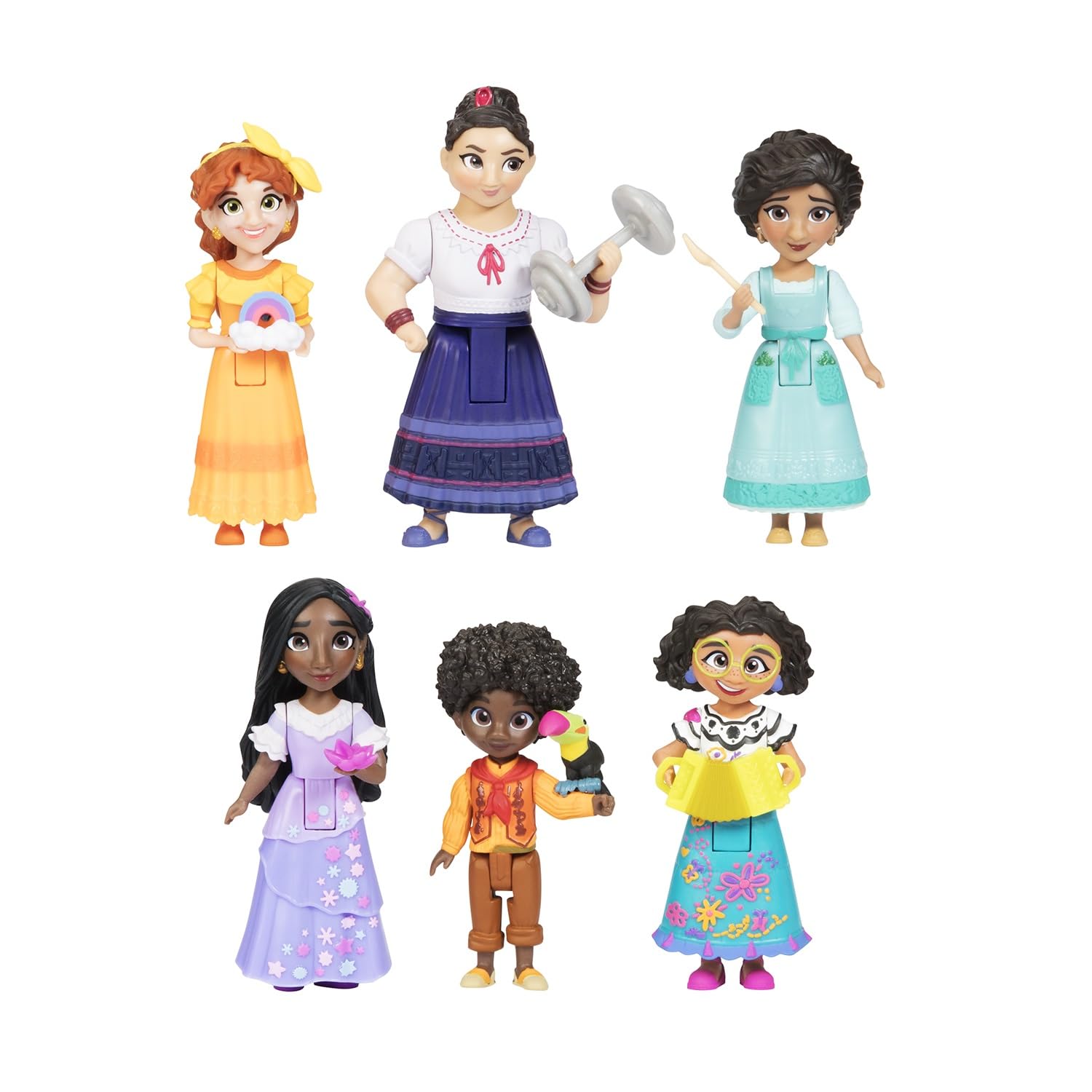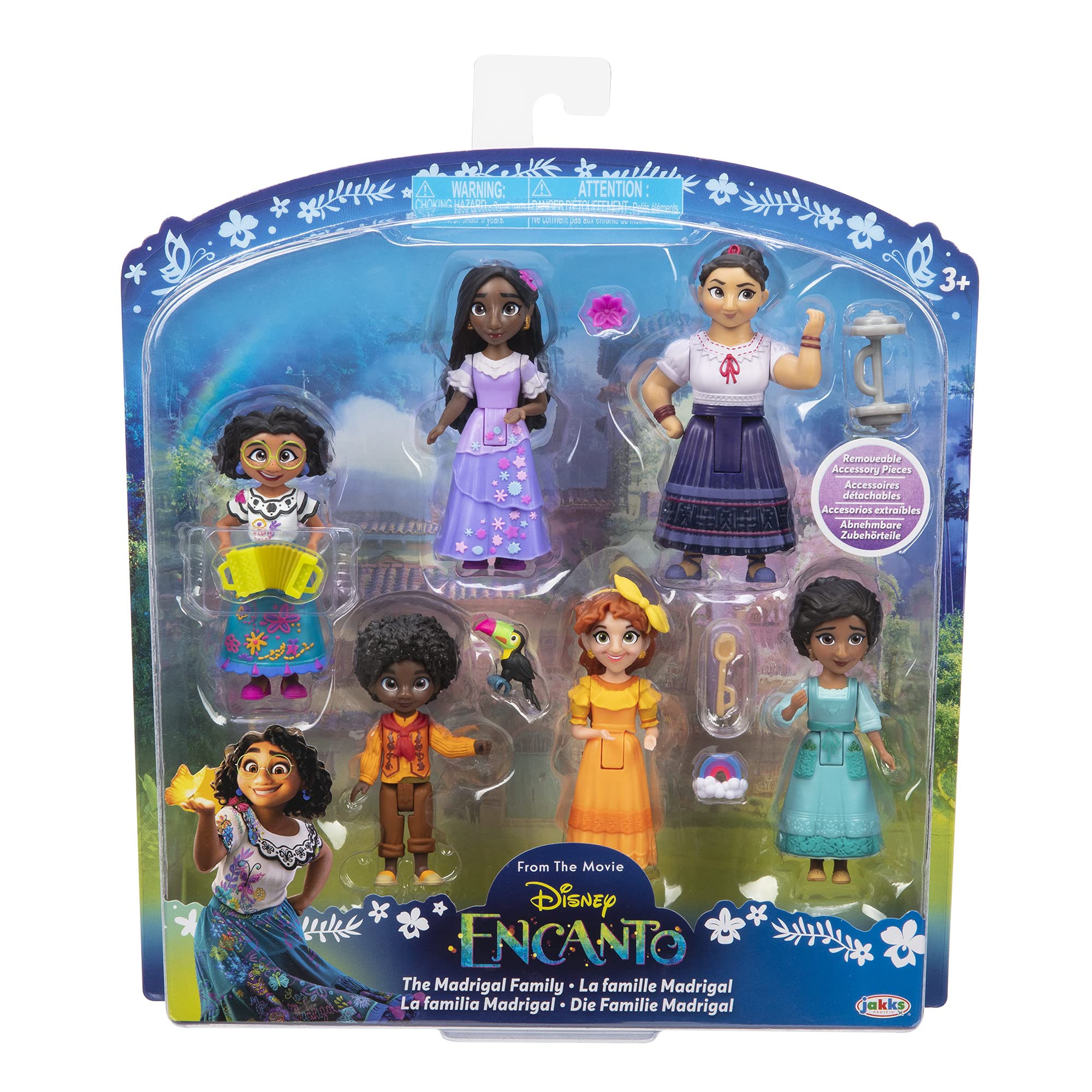 Details: Description Step into the magical world of Disney’s Encanto with these Madrigal family small dolls Each doll is modeled after a different member of the Madrigals, and includes an accessory piece that represents their character’s magical gift Articulated at the shoulders and hips, pose and play out your favorite Encanto scenes Includes: 6 Small Dolls and 6 Accessory Pieces - Mirabel, Antonio, Isabela, Luisa, Pepa and Julieta