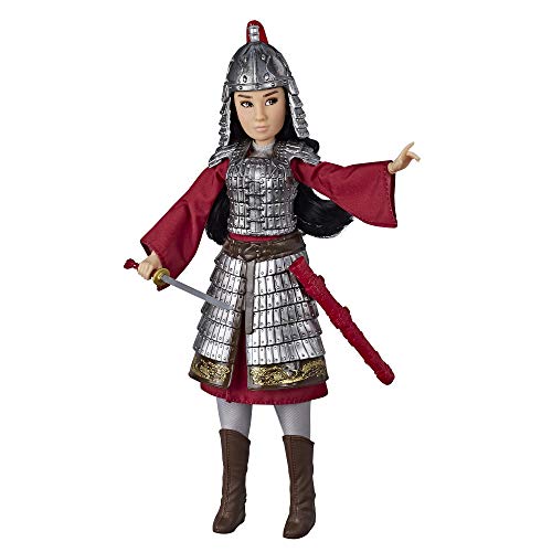 Details: Disney’s Mulan is the epic tale of a fearless young woman who risks everything out of love for her family and her country to become one of the greatest warriors China has ever known. This Mulan deluxe fashion doll has long black hair, two outfits and fun accessories, as a complement to her courageous and spirited personality in the new Disney film. Dress the Mulan toy as a hero in her red warrior outfit, belt, helmet, armour, sword and sheath accessories, or show off her elegant dress. She also comes with two pairs of shoes for more dress-up fun! This timeless Mulan doll makes a great gift or birthday present for 3-year-olds and older as well as fans of the film. Start a collection of Disney's Mulan dolls or include this one in your child's collection of other Disney Princess dolls. Each sold separately. Subject to availability. Hasbro and all related terms are trademarks of Hasbro. Copyright Disney. Safety Warning Ages 3 and up : CHOKING HAZARD – Small parts - not for children under 3 years.