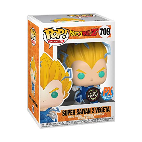 Details: Description Hop into the hyperbolic time chamber and power up your Dragon Ball Pop! collection with this exclusive Super Saiyan 2 Vegeta with Glow-in-the-Dark chase! Vegeta features clear plastic energy effects for a truly electrifying figure, and look out for a chase version with Glow-in-the-Dark eyes and effects! Each Pop! figure stands about 3 3/4" tall and comes in a collector friendly window box for display.