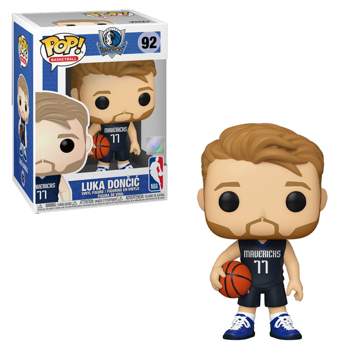 This Pop! stylized figure features NBA basketball player Luka Dončić wearing his alternate Mavericks jersey.