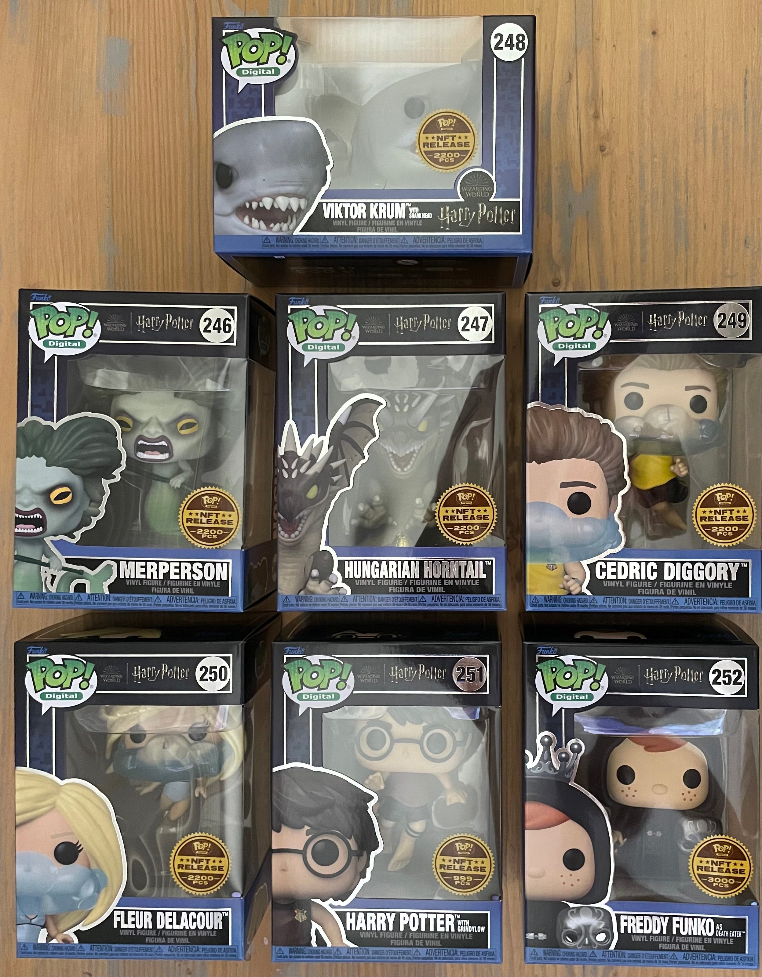 Funko Pop! Digital: Harry Potter - Harry, Cedric, Fleur, Krum, Horntail, Merperson & Freddy as Death Eater (Set of 7)
