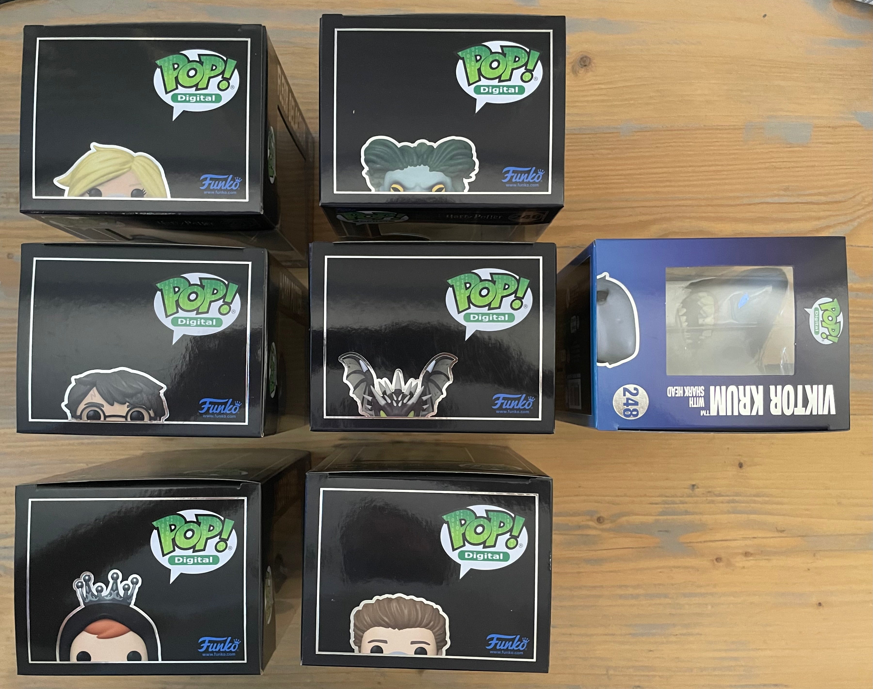 Harry will be shipped in a PopShield Armor hard protector. Hungarian Horntail and Freddy Funko will be shipped in Funko hard stack protectors. The others will be shipped in soft protectors.