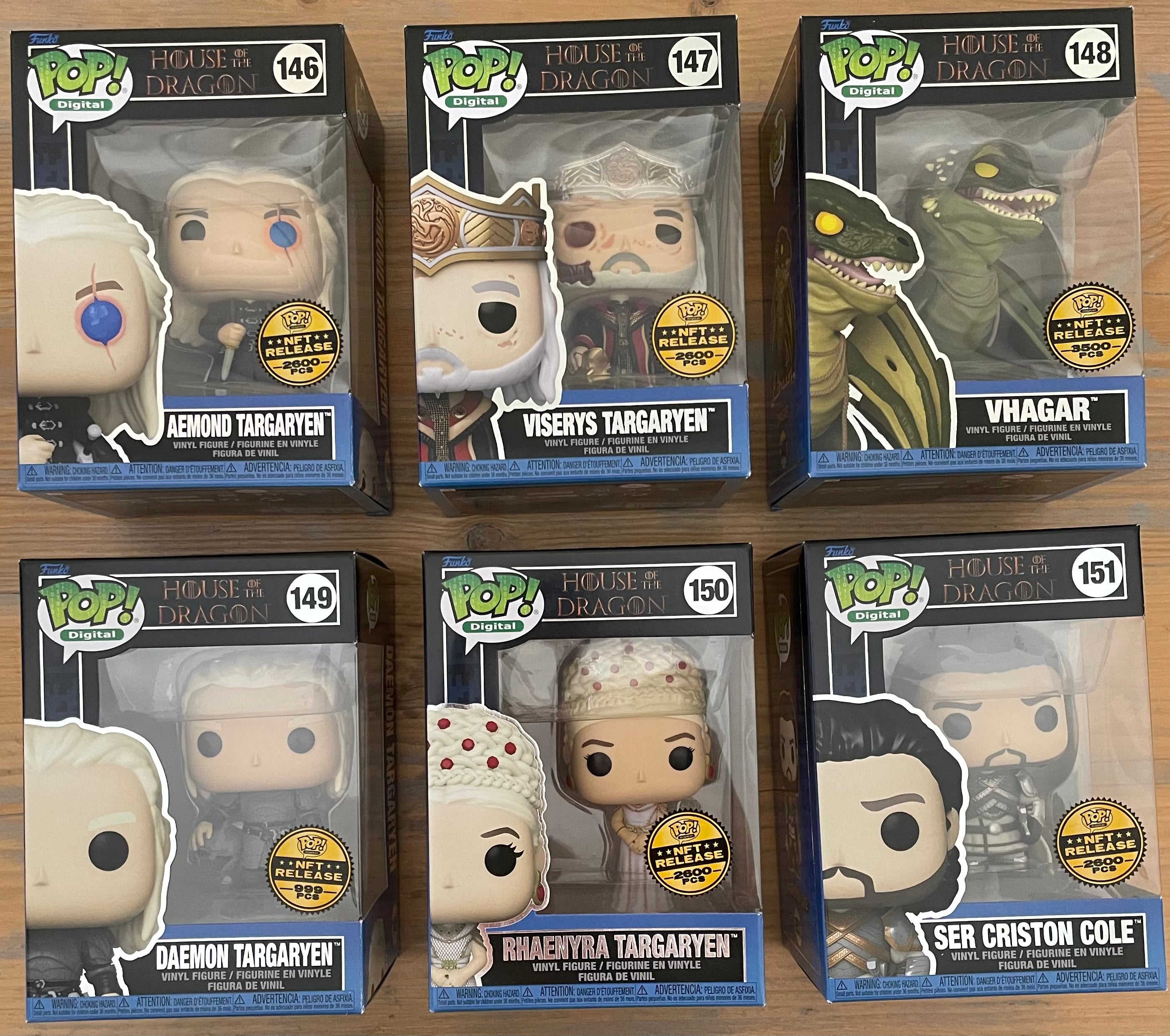 This is a Limited edition set of Funko physical collectibles, designed exclusively for the House of the Dragon x Funko Series 1 Digital NFT release.