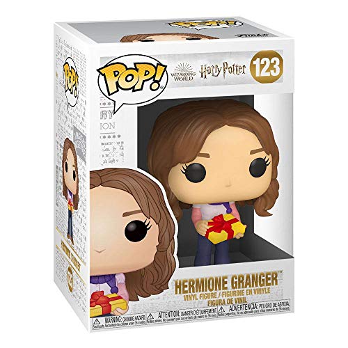 Hermione Granger is excited for the holidays and brings a gift. She'd be happy to help you decorate your home or Harry Potter collection. Take a break from classes to enjoy some quality time with friends and family, and Pop! Hermione Granger. Vinyl figure is approximately 3.5 in (8.9 cm) tall.