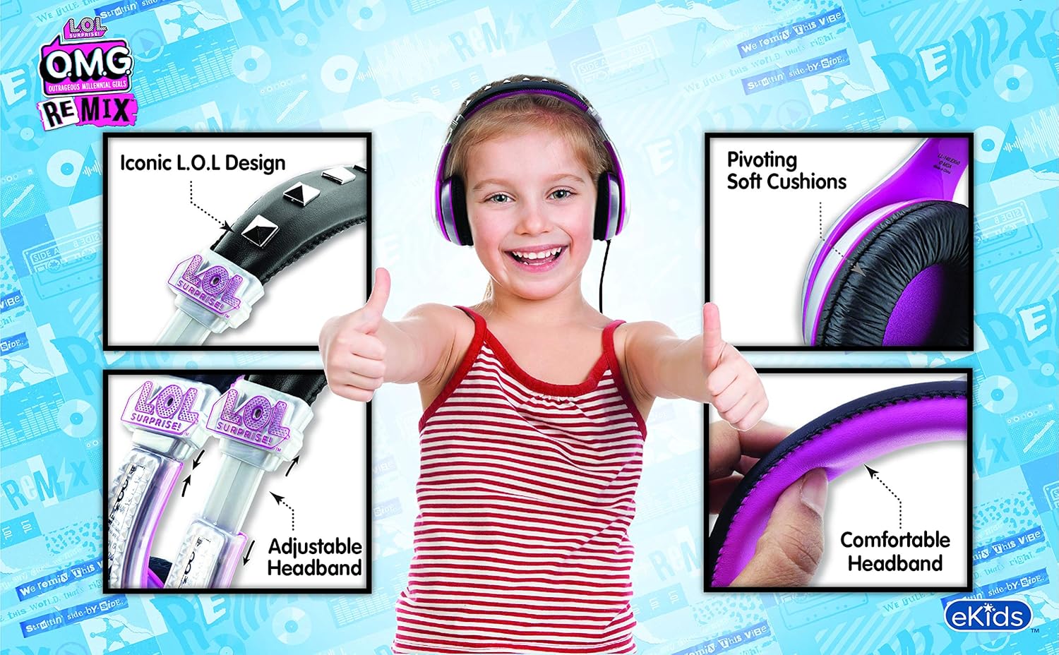 eKids L.O.L Surprise! OMG Remix Purple Over Ear Headphones, Wired, 3.5mm Jack, Volume Control, Tangle-Free, Foldable, Kids Headphones
