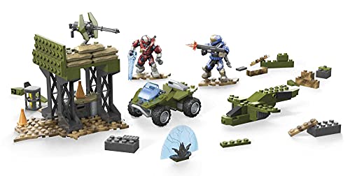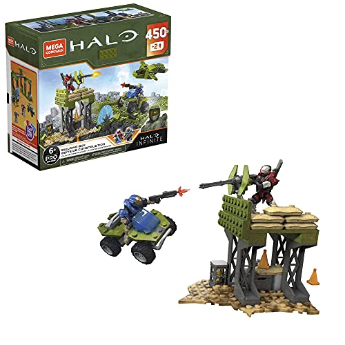 Details: Product Description Build your own Halo universe with this 450-piece creative building box. Prepare for battle with 2 micro action figures, special pieces – like wheels, risers, a shield and so many weapon accessories – custom piece shapes and a Halo-themed colour palette. The set also comes with 3 building ideas to start your mission. The box even features a resealable flap perfect for storage. This creative construction set is the perfect tool to hone your training, soldier Ideal for Probuilders, ages 8 and up. Safety Warning Small parts